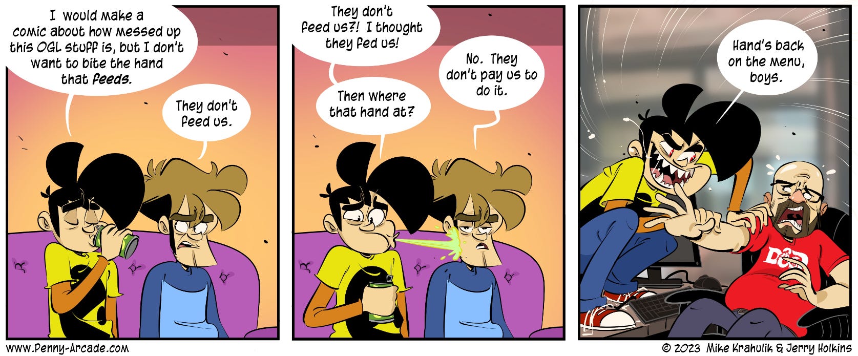 Para finalizar comparto el cierre del articulo de Penny Arcade sobre todo esto, que le habla directamente a WotC: