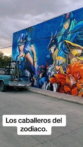 Este tremendo mural de los Caballeros de zodíaco.