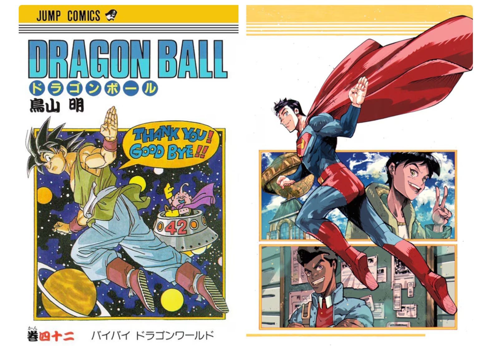 Superman rinde homenaje a Akira Toriyama con una portada alternativa en el cómic "Mis aventuras con Superman", replicando la última portada del manga "Dragon Ball".