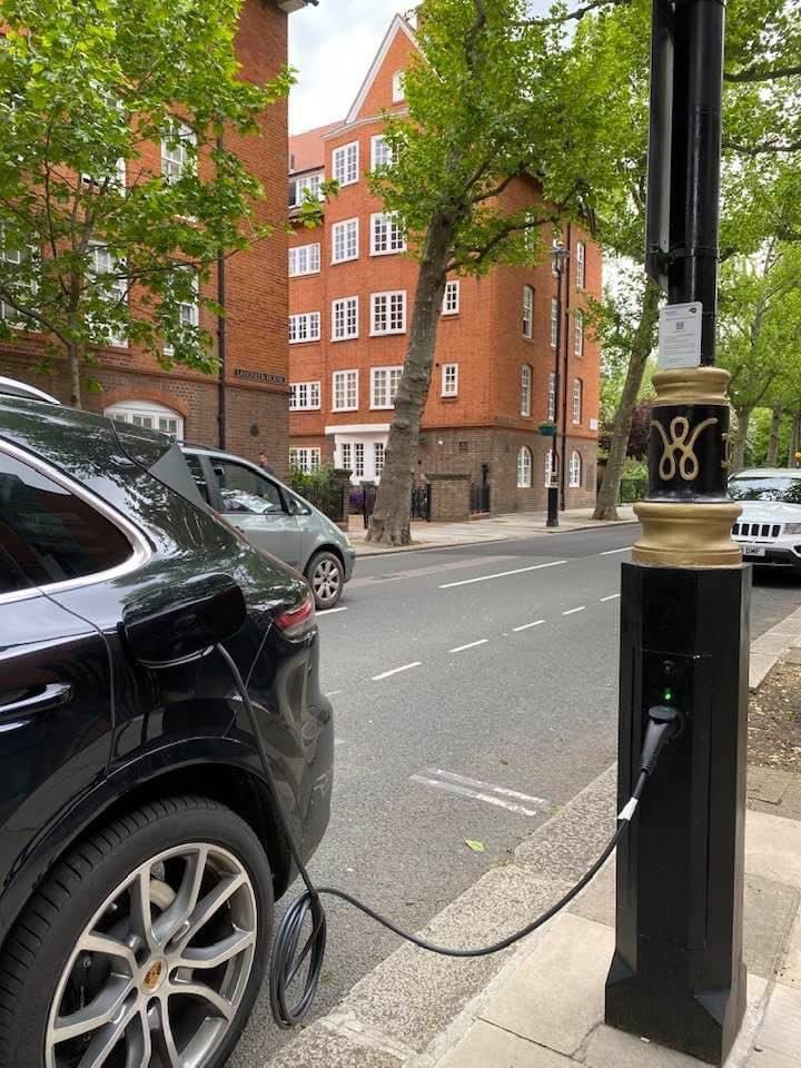 Tweet de Mike Butcher : “London is turning into a ‘Steam Punk’ city, with Victorian lampposts now adapted as electric car chargers.”