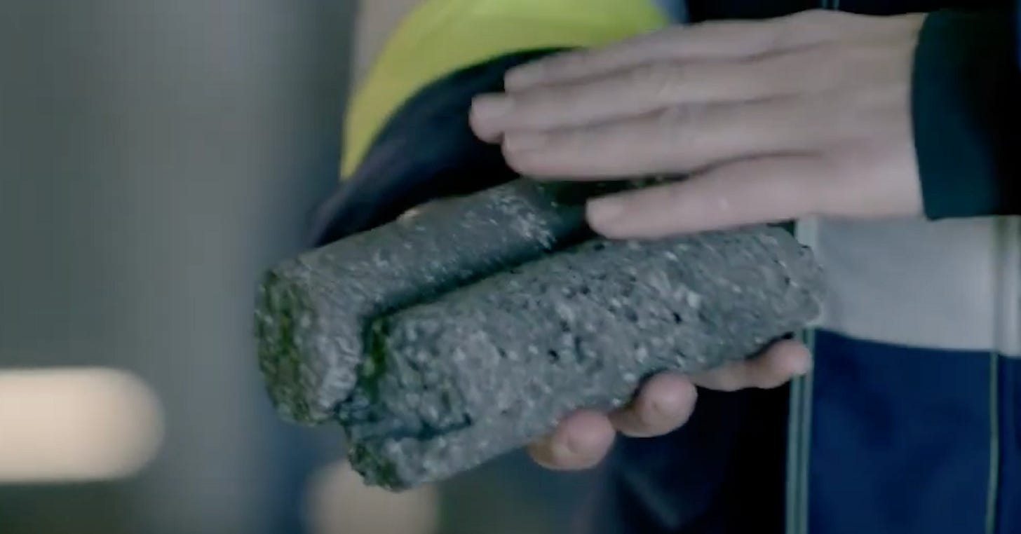 La roca porosa, a la derecha, es el basalto en su estilo Gruyere natural. Y a la izquierda es el basalto inyectado con CO2, donde las manchas blancas ese el CO2 mineralizado que rellenó los huecos.