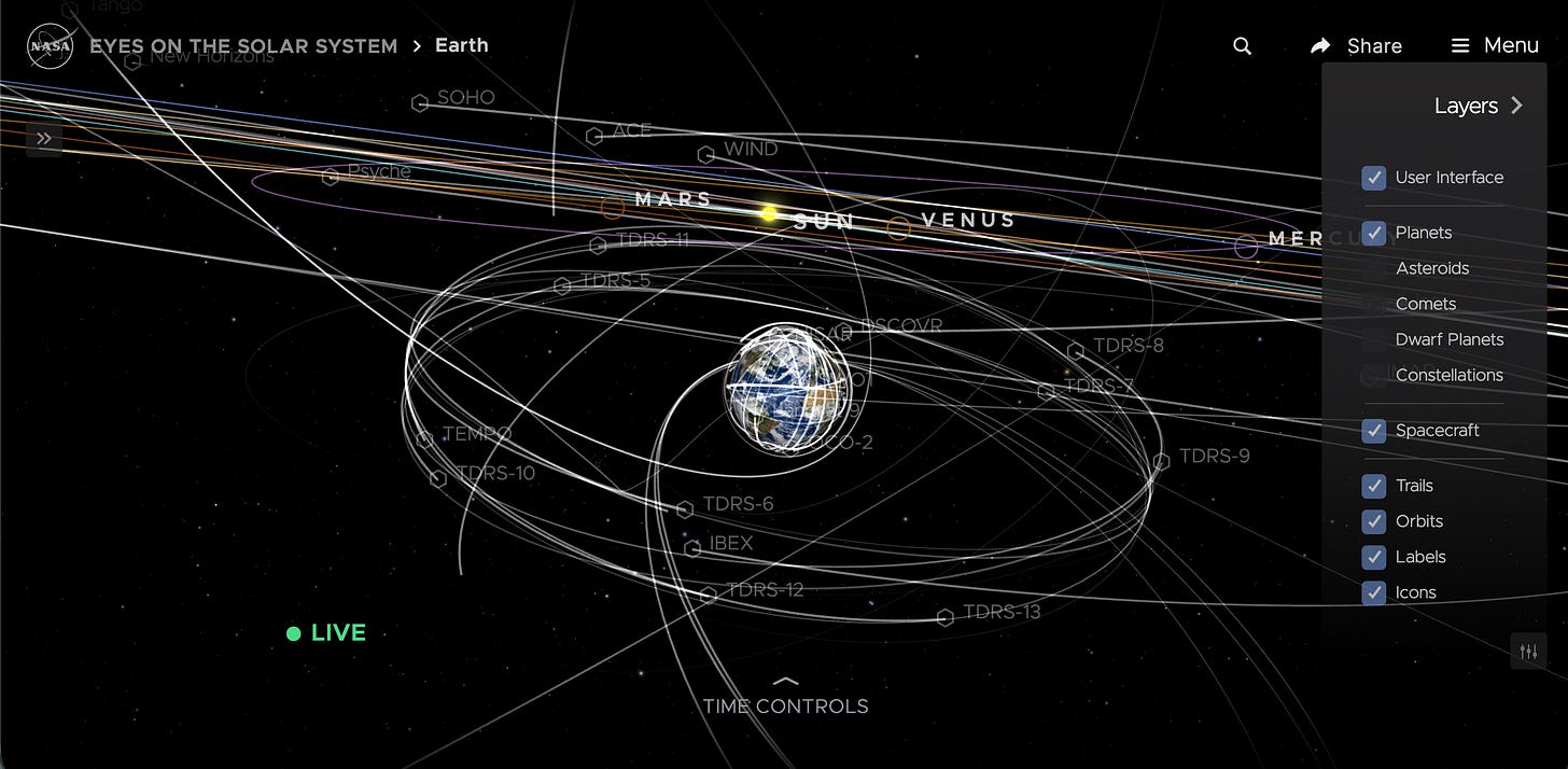 Un hermoso sitio de la NASA (nasa.gov): Investigando sobre este logro humano, me topé con la imagen que pegué arriba y me pregunté de donde había salido. Y resulta que hay un sitio de la NASA que te permite visitar virtualmente casi todos los objetos registrados en el firmamento, con sus trayectorias, características, representaciones 3D y mucho más. Me perdí como 45 minutos jugando con esto.