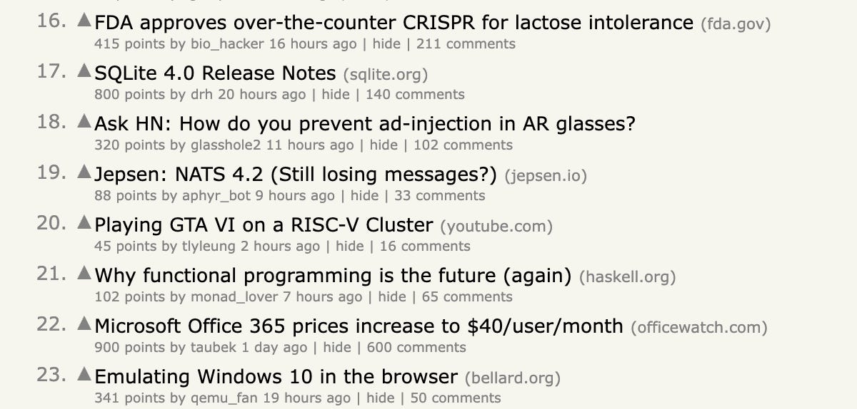 Un vistazo al futuro (dosaygo-studio): Un tipo le dijo a Gemini que le prepara un The Hacker News de YC, con noticias del 2035. Los resultados son mejores que los de Black Mirror.